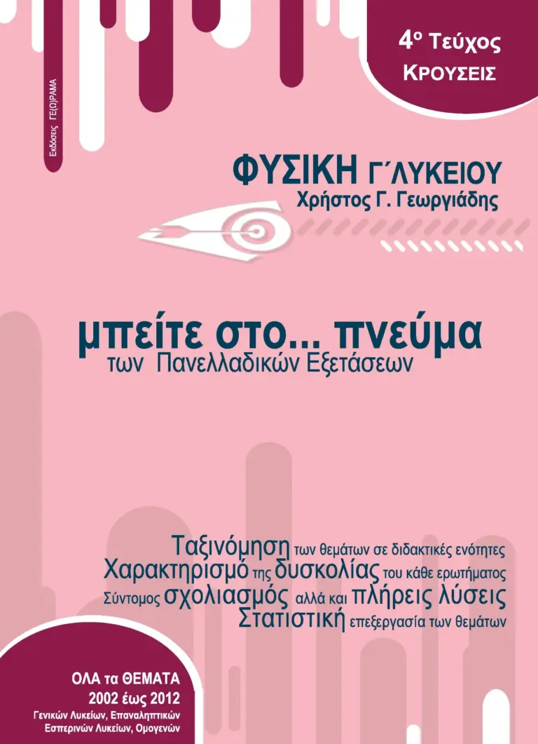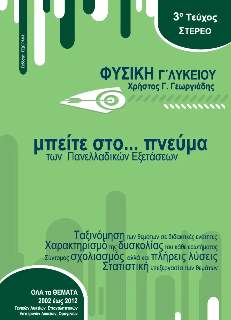 Με συνέπεια, εμπειρία και βαθιά γνώση του αντικειμένου, ο Γεωργιάδης Χρήστος συνεχίζει να προσφέρει πολύτιμα εργαλεία μάθησης, βοηθώντας μαθητές και εκπαιδευτικούς να προσεγγίσουν τη Φυσική με μεθοδικότητα, σαφήνεια και αποτελεσματικότητα.